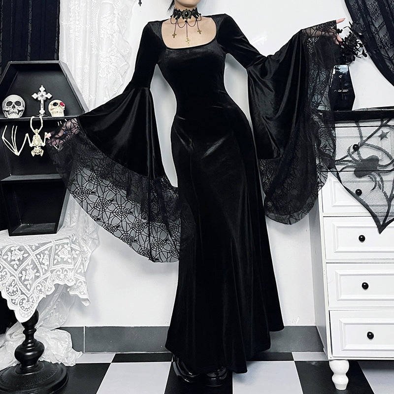 Scopri l'Abito a Maniche Lunghe con Dettagli Ragnatela, perfetto per Halloween. Con un design raffinato a vita alta, questo abito in nero mette in risalto la silhouette, unendo eleganza e mistero. Le maniche lunghe e la gonna lunga donano un tocco sofisticato, mentre il tessuto in poliestere offre comfort e resistenza. L'elemento distintivo? Le cuciture a ragnatela, che aggiungono un'atmosfera gotica e inquietante, ideale per una festa o una serata a tema. Disponibile nelle taglie S, M e L, è il capo essenziale per un Halloween indimenticabile.