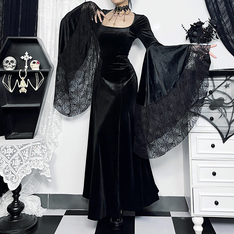 Abito a Maniche Lunghe con Dettagli Ragnatela per Halloween