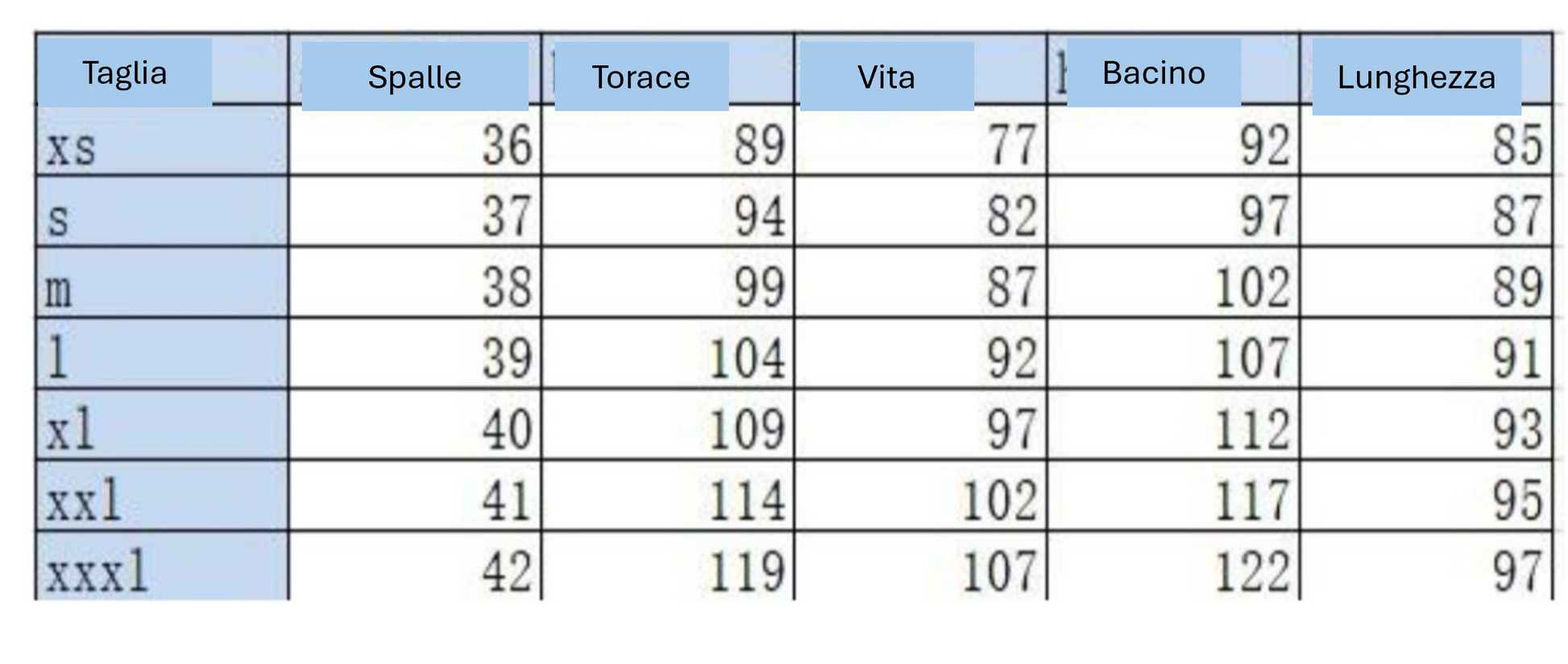 Vedi tabella allegata