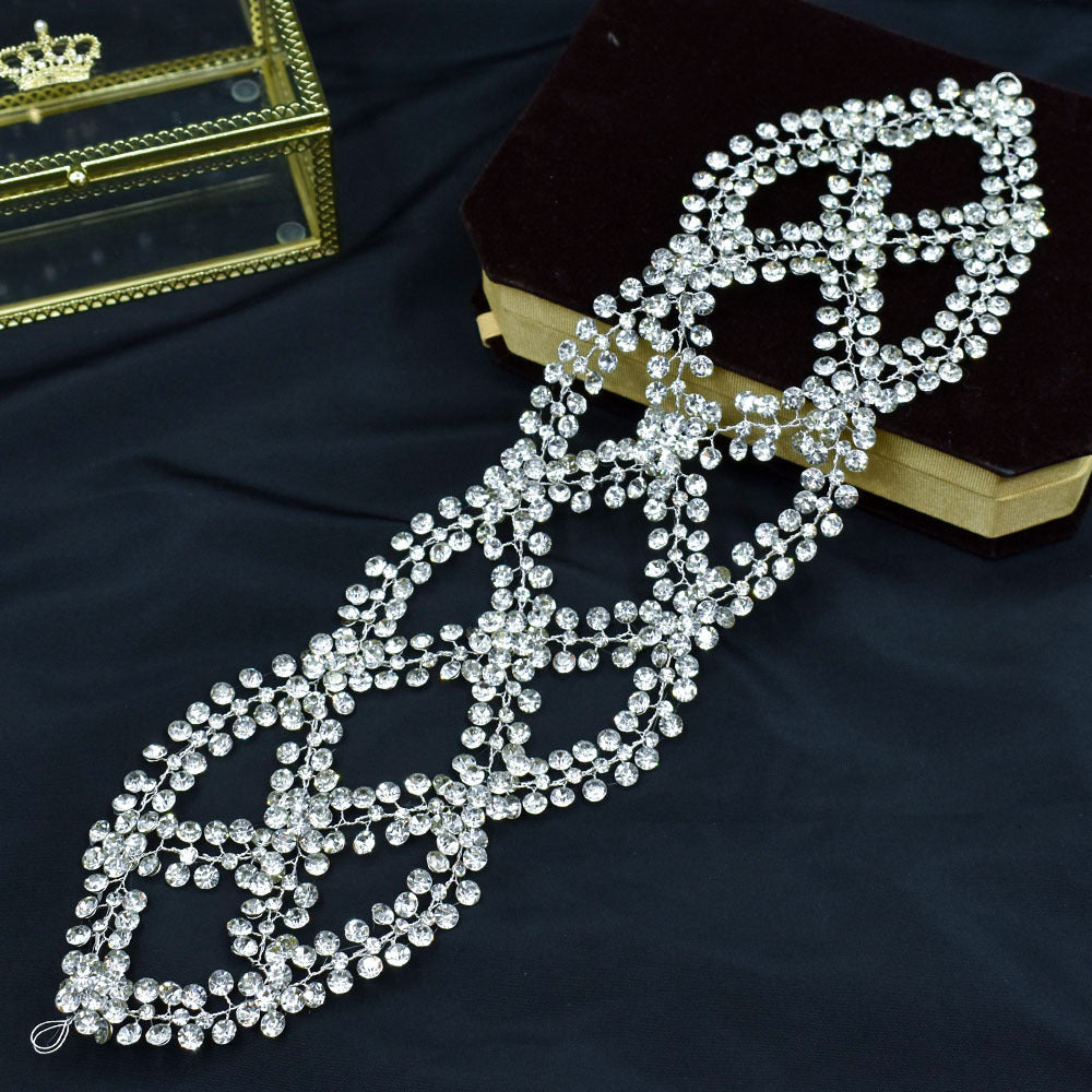 Diadema Sposa Fatto a Mano con Strass a Croce e Design a S