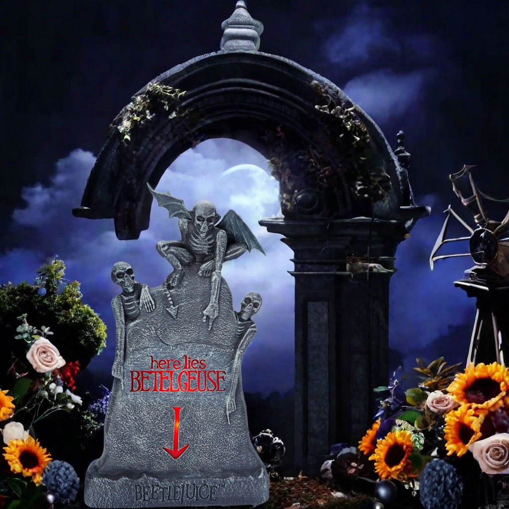 Ornamenti per atmosfera horror con lapide con teschio fantasma incandescente di Halloween