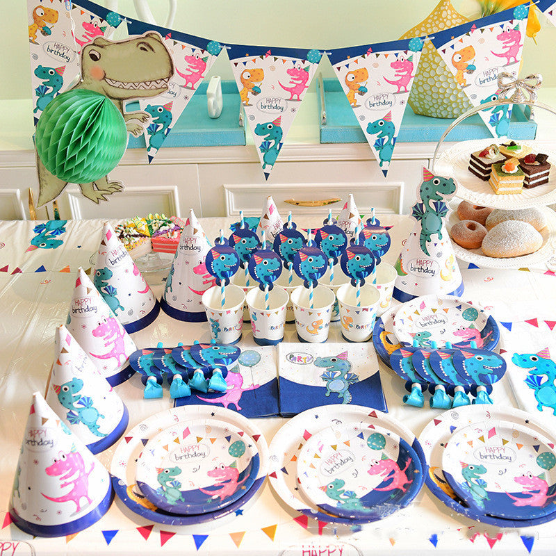Dimensioni: tovaglia a tema dinosauri, 8 piatti piani diametro 22,50 cm a tema dinosauri, 8 piatti piani diametro 17,50 cm a tema dinosauri, 8 bicchieri a tema dinosauri, 8 cannucce a tema dinosauri, 8 trombette da soffiare a tema dinosauri, tovaglioli a tema dinosauro 1 confezione, protagonista a tema dinosauro 1 cappello, 8 berretti tema dinosauri, 1 gagliardetto a tema dinosauri, 1 ornamento a tema dinosauro, 8 maschere per gli occhi misteriose a tema dinosauro