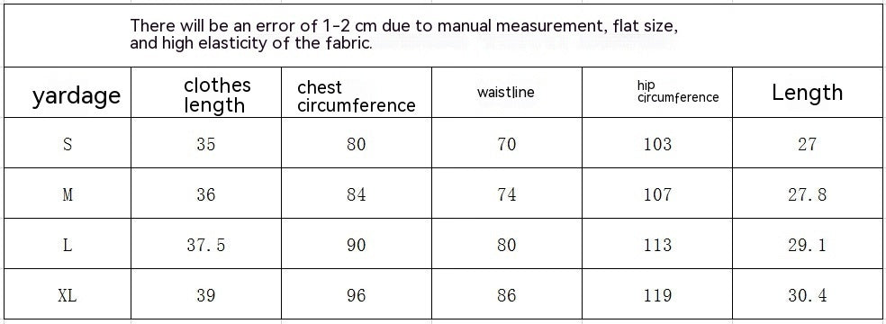 Taglia: S (lunghezza top 35, cinconf.torace 80, vita 70, bacino 103, lunghezza pantalone 27) M (lunghezza top 36, cinconf.torace 84, vita 74, bacino 107, lunghezza pantalone 27.8), L (lunghezza top 37.5, cinconf.torace 90, vita 80, bacino 113, lunghezza pantalone 29.1), XL (lunghezza top 39, cinconf.torace 96, vita 86, bacino 119, lunghezza pantalone 30.4)